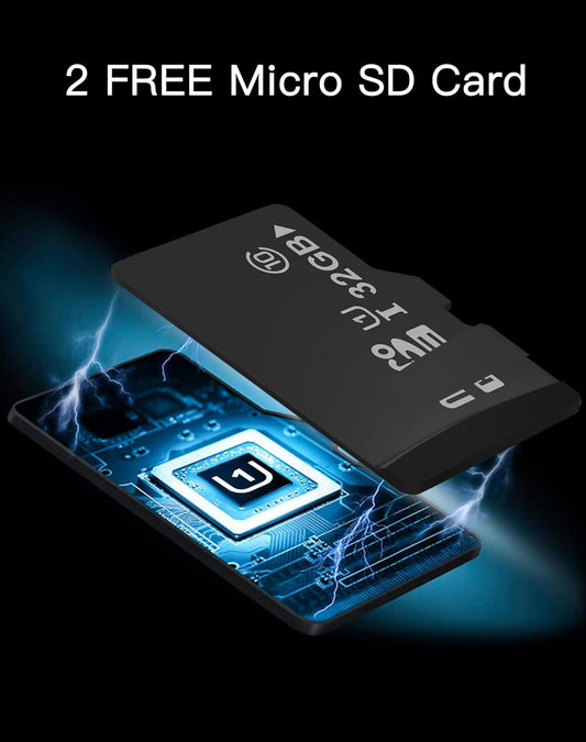 Security Cameras for Home + 2X 32GB SD Cards, PT Home Security Camera System with Motion Detection, Two-Way Audio, Night Vision, Indoor Wifi Camera for Baby/Pet, Alexa, USA Cloud Service